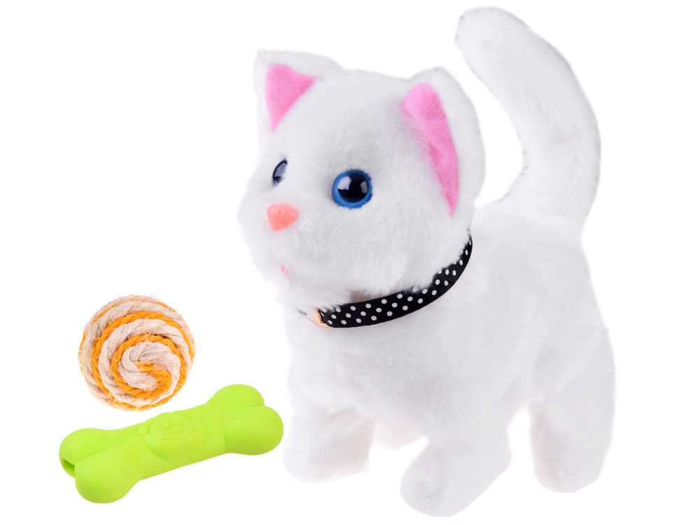 Pisicuta interactiva din plus alba, merge inainte si inapoi, dimensiune 16 x 18 x 11 cm