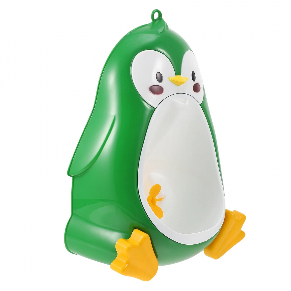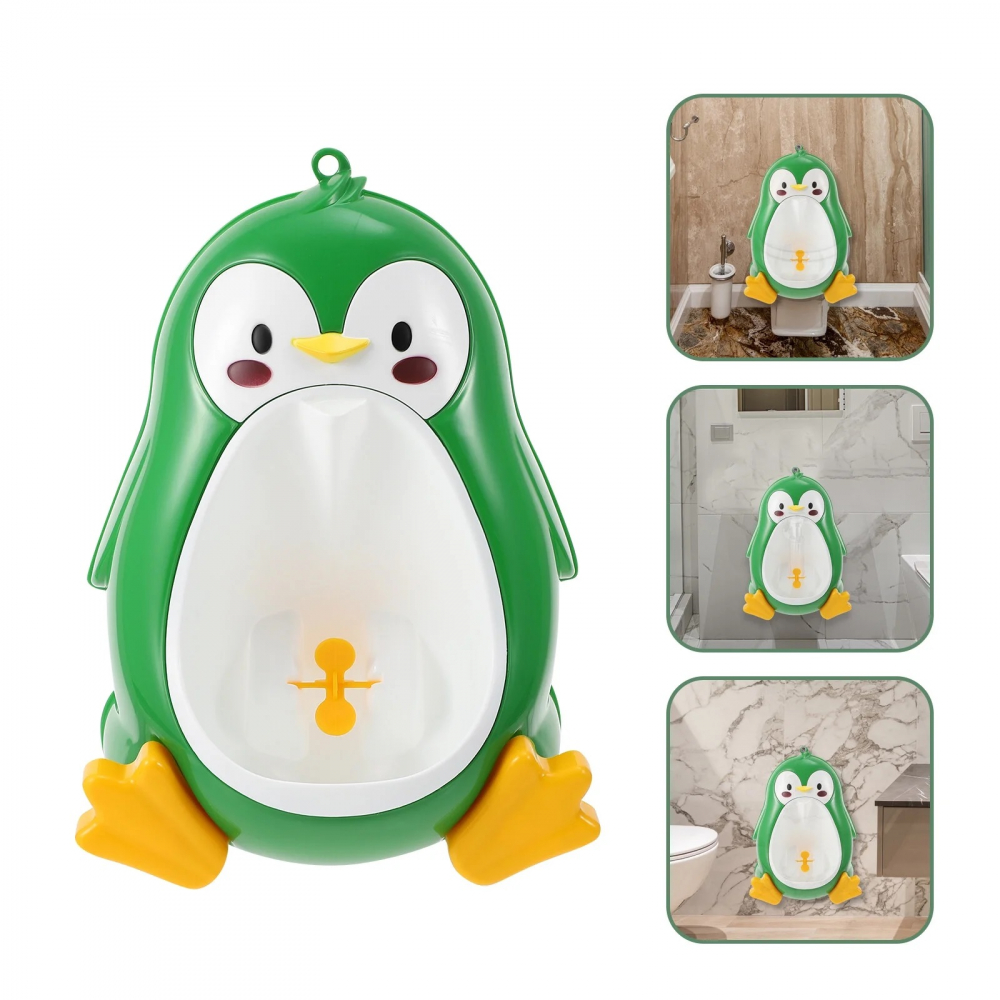 Pisoar pentru baieti Little Mom Cute Penguin Green sigur si rezistent, cu montare versatila prin ventuze de perete, sau agatare, dimensiune 26 x 37cm
