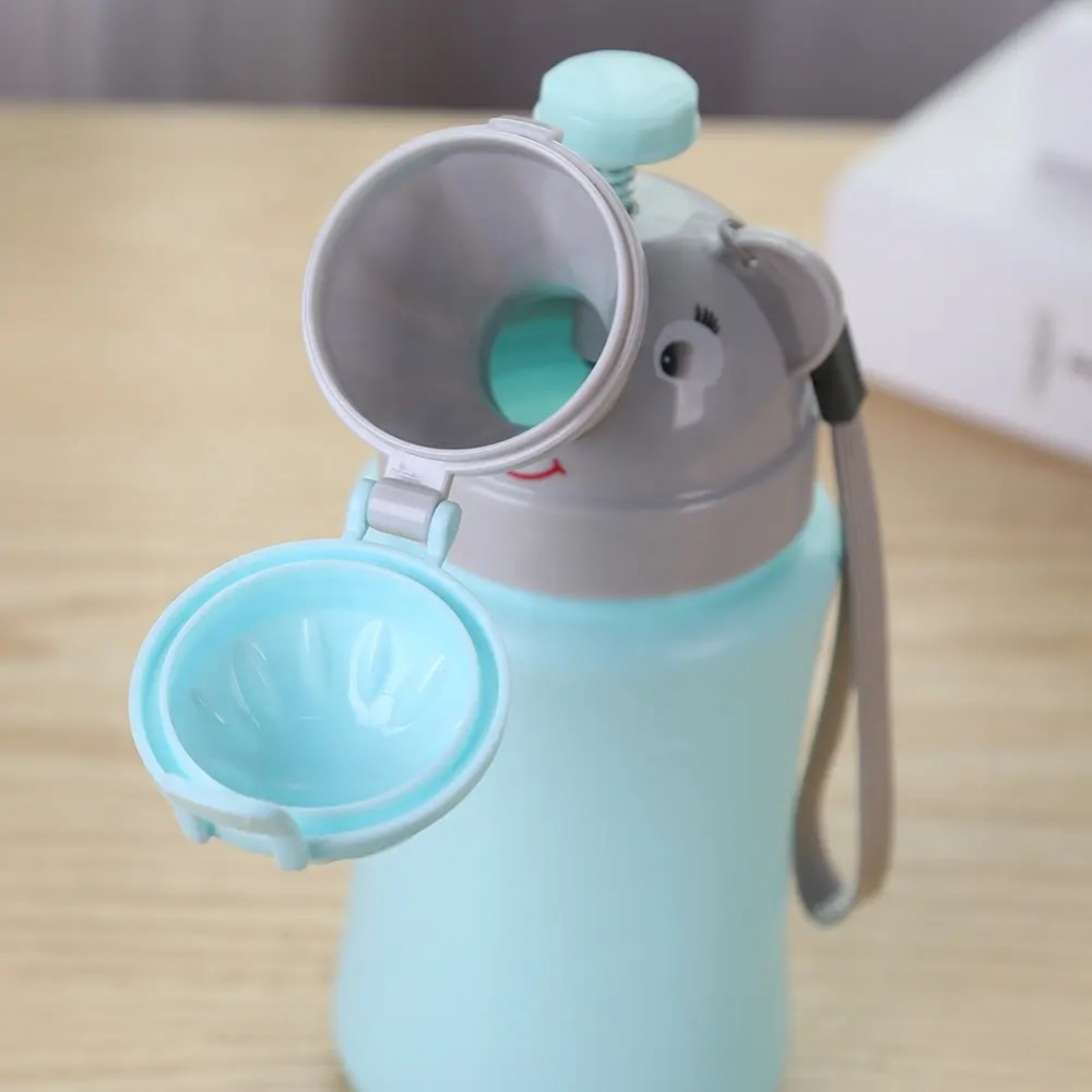 Pisoar portabil pentru baietei Little Mom Travel Blue reutilizabil, design ergonomic si intuitiv, dimensiune 22 x 8 cm, capacitate 500 ml