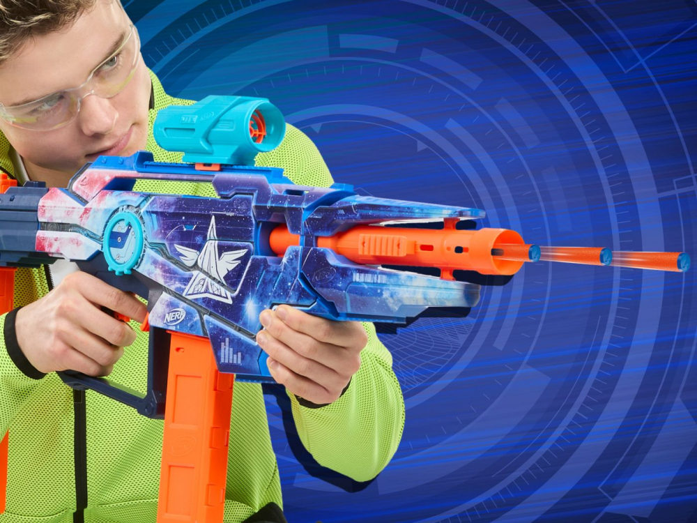 Pistolul Nerf Loadout Galactic Commander vine cu 48 de sageti Nerf N1 conceput pentru precizie, viteza si distanta extrema.