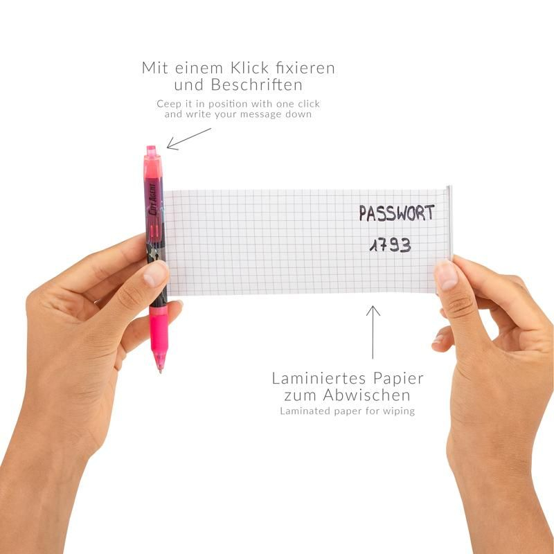 Pur si simplu scoateti hartia de notite, tineti-o in loc cu un singur clic si scrieti mesajul secret.