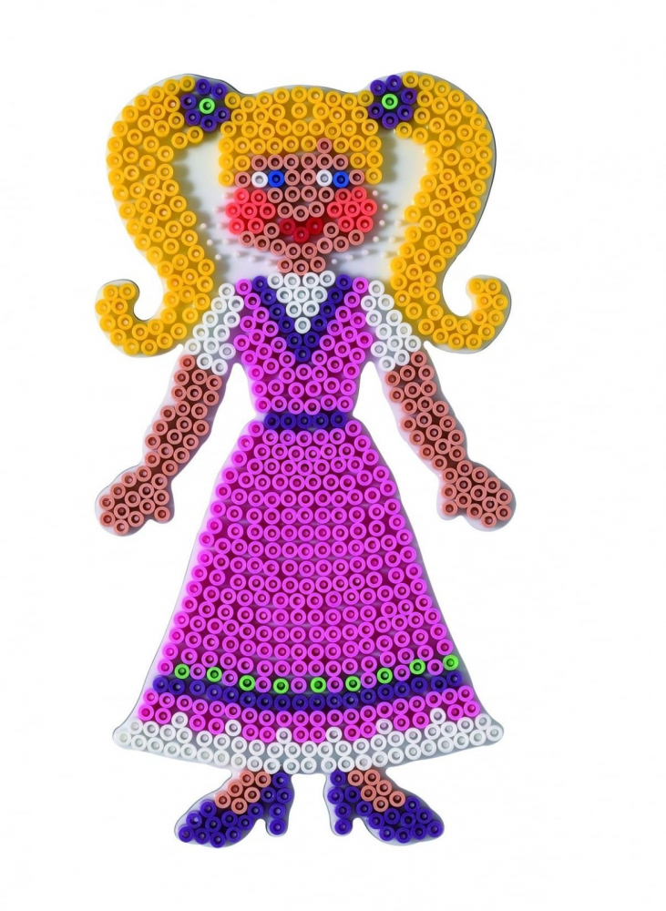 Planșetă de lucru albă pentru mărgele midi de forma fată adolescentă, dimensiuni: 23 x 12,5 x 0,5 cm. Din material plastic de înaltă calitate cu colțuri rotunjite. Pe planșeta de lucru sunt 761 țepușe pentru Mărgele de călcat HAMA MIDI.