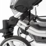 partea sport sau de scaunul auto poziționat pe cadrul căruciorului. Sistemul elastic de fixare oferă siguranță chiar și în condiții de vânt sau pe