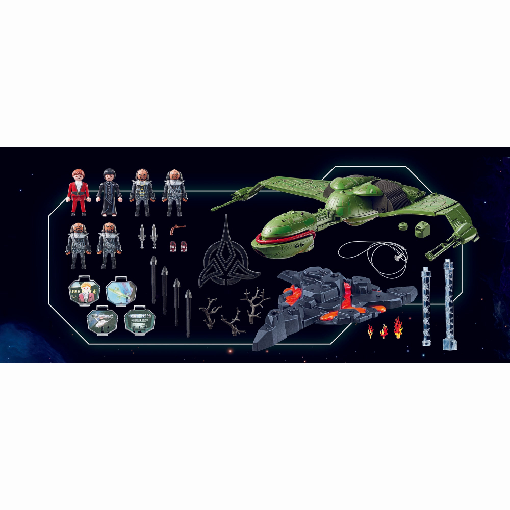 Pasarea de prada cu lumini si sunete originale de la PLAYMOBIL se bazeaza pe filmul din anii '80 Star Trek III: Cautarea lui Spock si extinde universul Playmobil Star Trek.
