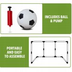 - Accesorii incluse: pe langa poarta, setul contine un fluier, cartonase de arbitru, o pompa, o minge si ancore pentru fixare. Astfel, micii fotbalisti au tot ce le trebuie pentru a organiza meciuri complete.