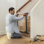 Poarta poate fi instalata folosind un sistem de montare prin presiune cu suruburi sau fixata permanent cu placutele de montare si ancorele de perete incluse.