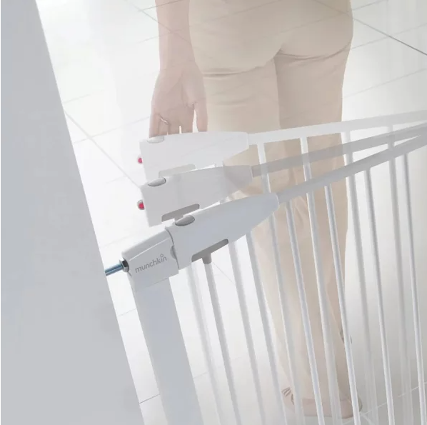 Poarta de siguranta Munchkin Easy Lock se potriveste cu deschideri de 73 cm pana la 79 cm.