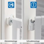 Bariera de siguranță poate fi înșurubată sau fixată pe perete. Datorită conexiunii fixe cu șuruburi pe perete, este deosebit de potrivită pentru securizarea scărilor, deoarece aici trebuie să vă bazați pe o fixare sigură.