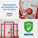 Bariera cu cleme și șuruburi nu numai că vă ajută să securizați în mod fiabil zonele scărilor și astfel să preveniți căderile periculoase, dar și încăperi în care există potențiale surse de pericol pentru copilul dumneavoastră (de exemplu, obiecte ascuțite, medicamente, produse de curățare, aragazuri etc.) care le fac inaccesibile celor mici. Pentru un mediu protejat pentru comoara dumneavoastră.