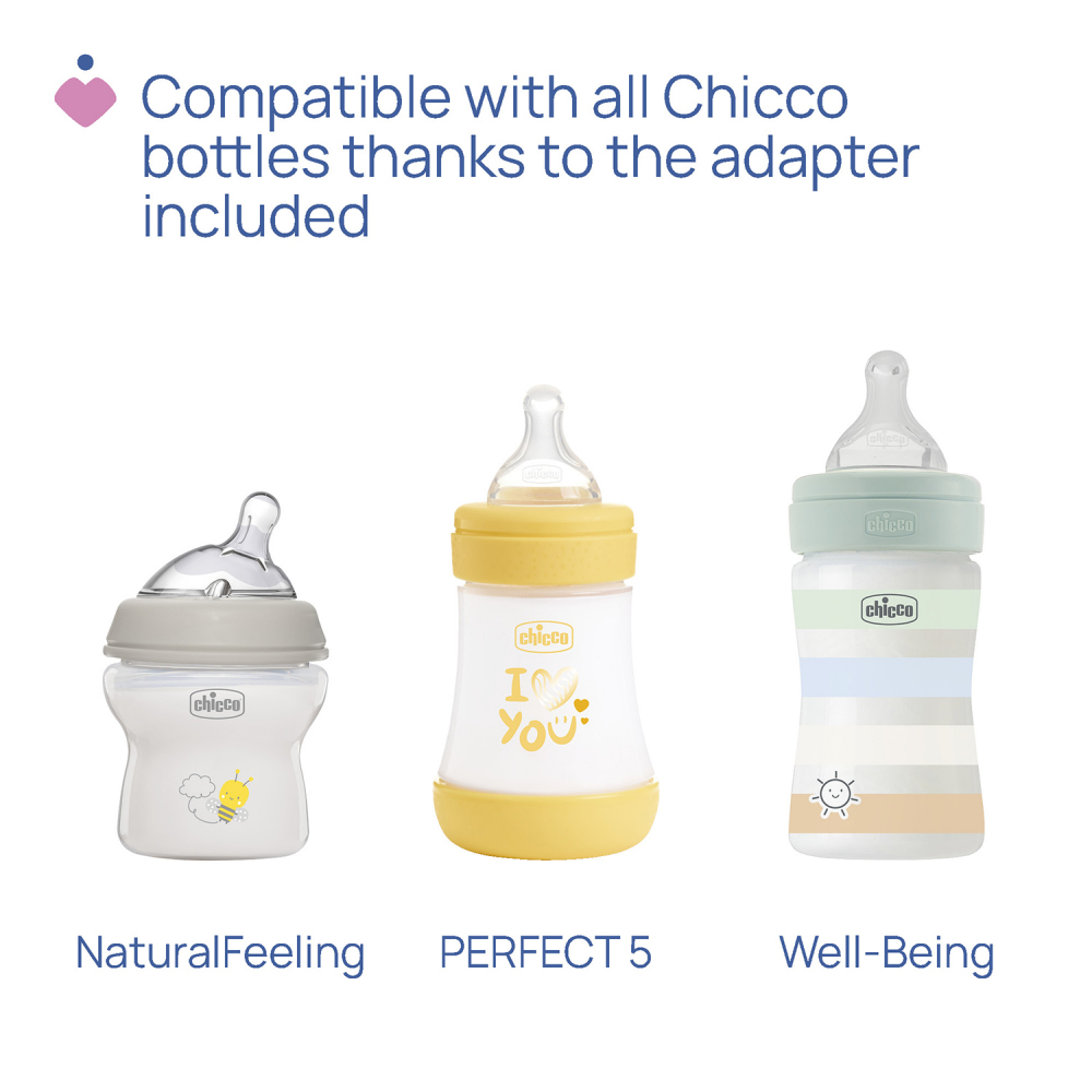 • Compatibilitate cu sticlele NaturalFeeling, Well-Being si Perfect5: Include capac pentru stocarea laptelui si o tetina NaturalFeeling pentru hranirea bebelusului.
