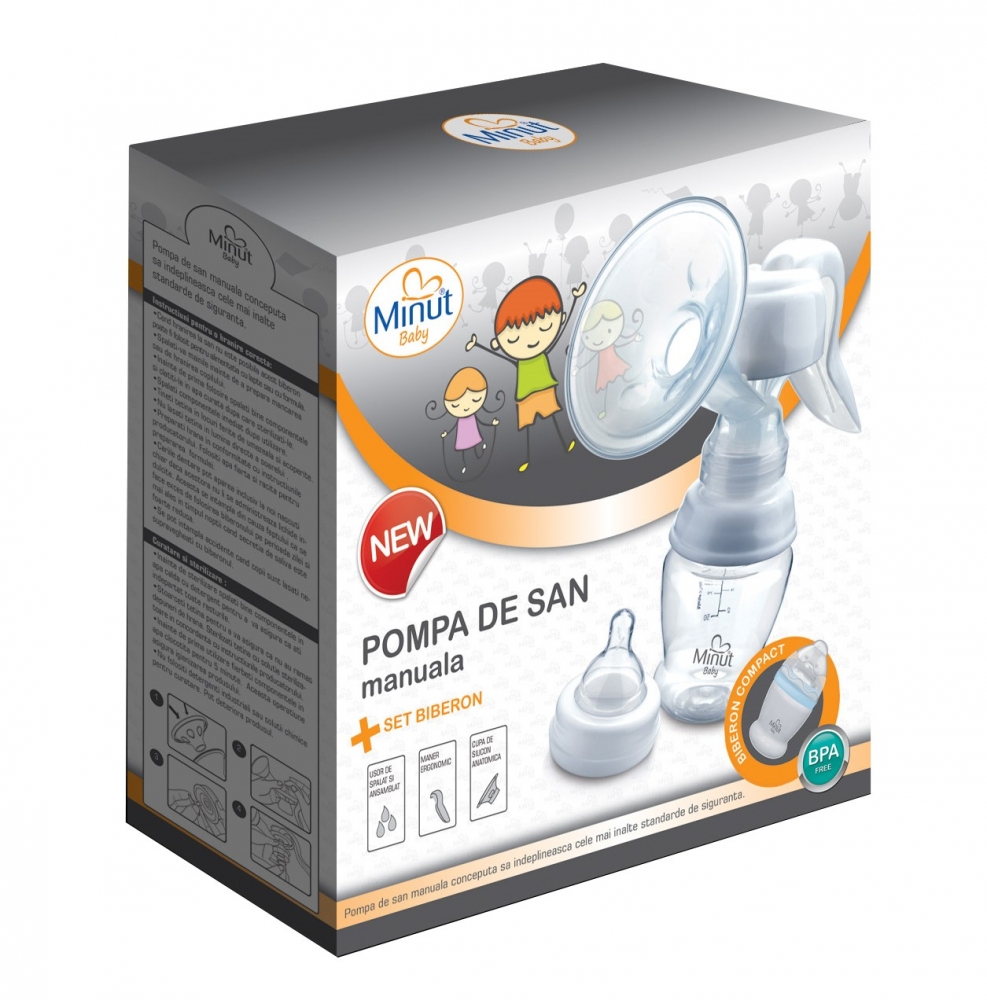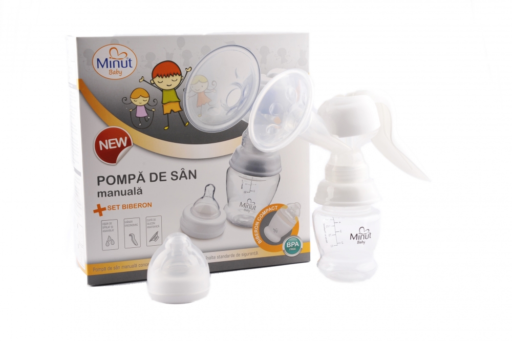 Pompa san Minut Baby manuala cu biberon si tetina BPA free