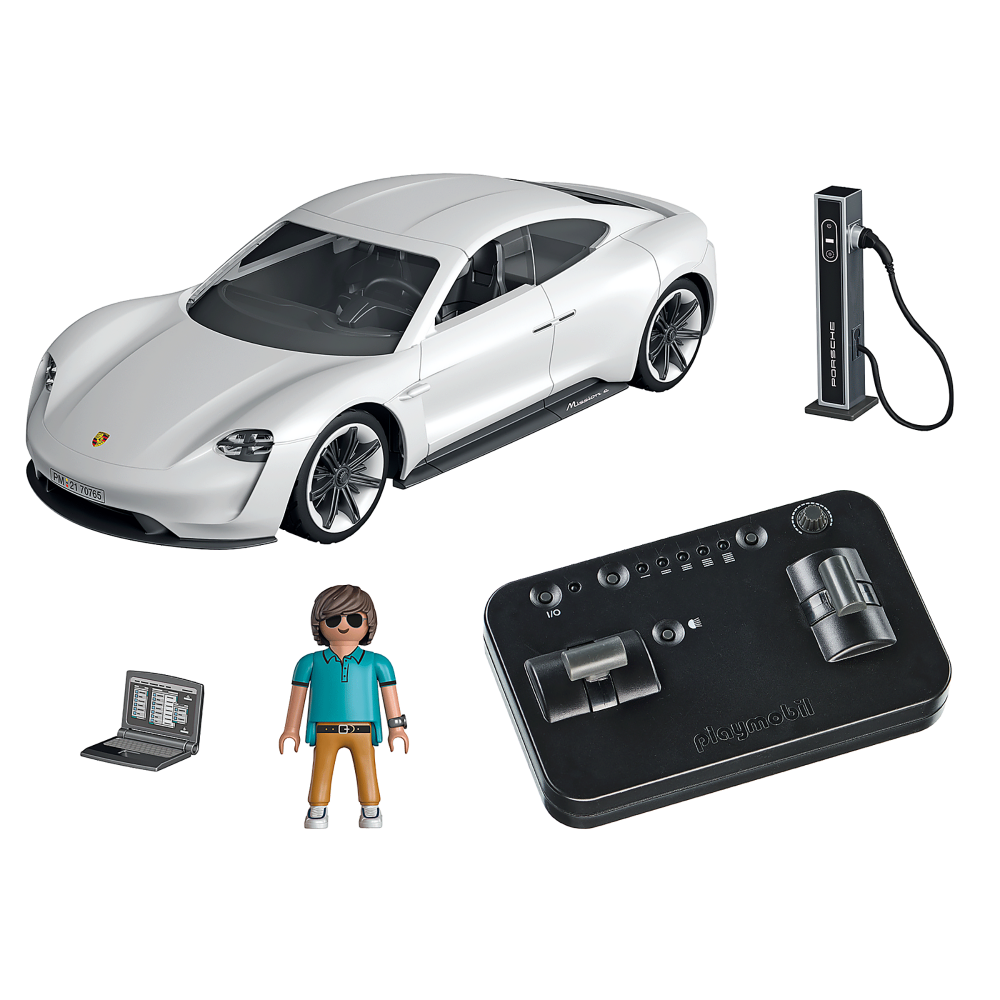 Setul de joc include un Porsche Mission E, o figurina PLAYMOBIL, o telecomanda RC si alte elemente interesante pentru actiuni de curse cu ritm rapid.