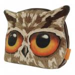 - Portofel realizat din bumbac, are forma unei simpatice bufnite, cu nuante de maro caramel si cafeniu ce ii pun in evidenta penajul frumos. Ochii bufnitei de culoarea chihlimbarului sunt electrizanti si dau portofelului atractie. Bufnita este brodata manual pe suprafata portofelului.
