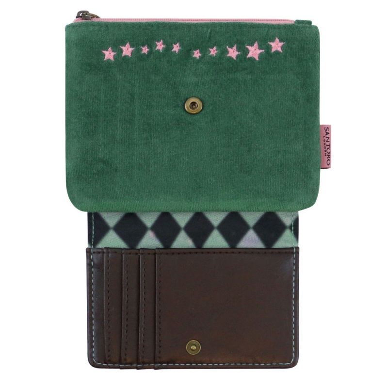 Portofelul mic Gorjuss Circus Firefly este colorat in nuante de verde si negru.