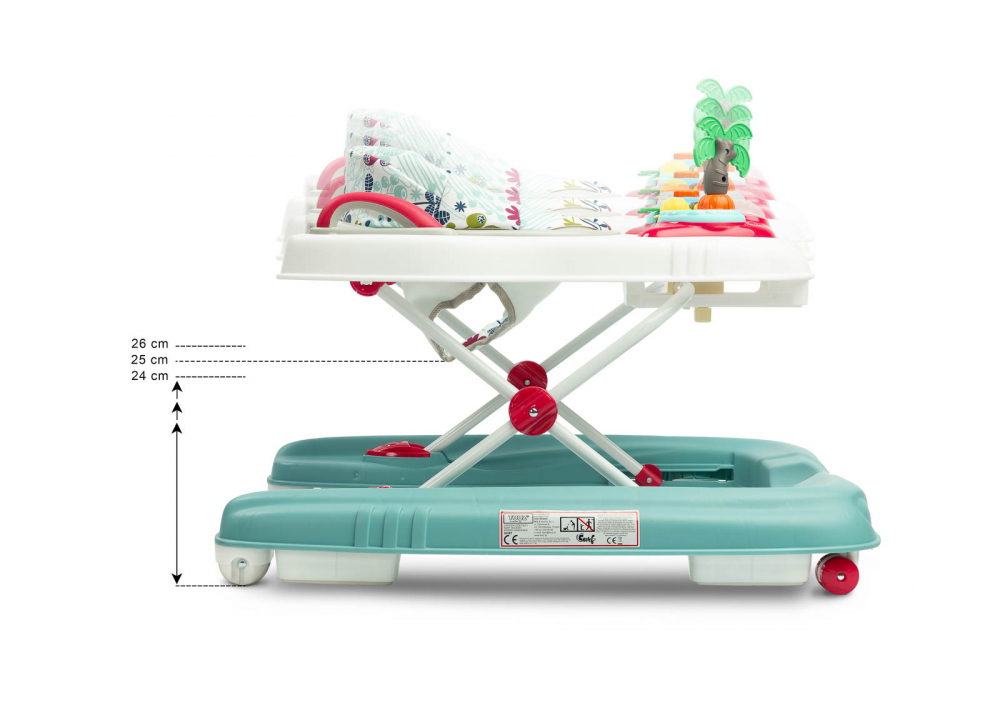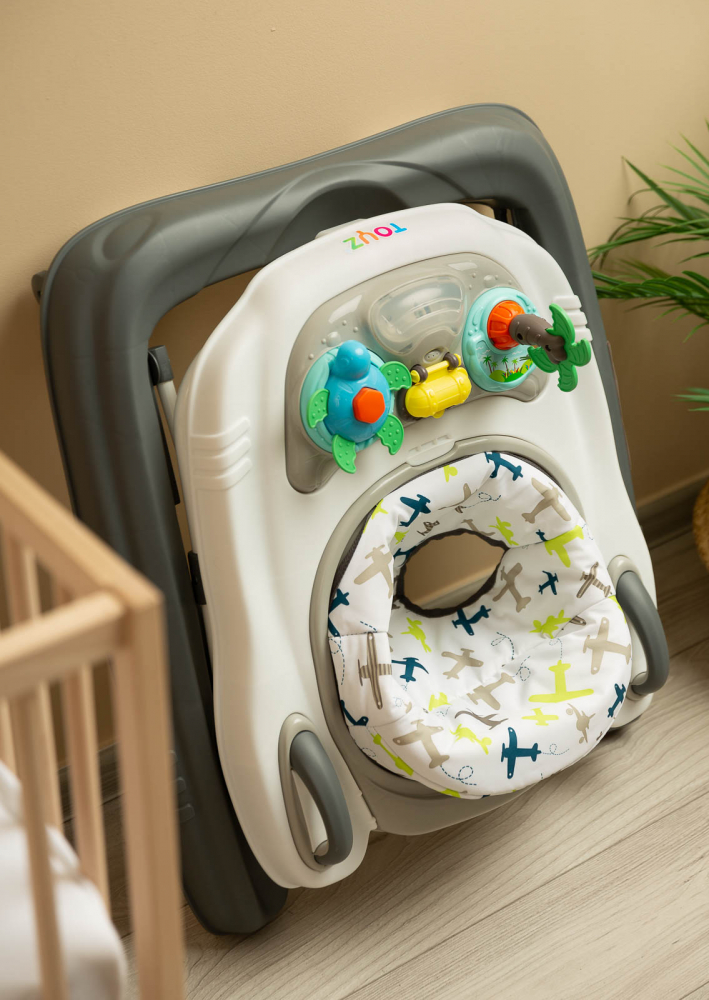 Premergator 2in1 pentru copii Toyz Surf Fly, Roti pivotante, Model pliabil, Scaun reglabil pe inaltime, Spatar inalt, Husa detasabila, Opritoare din cauciuc,Panou cu jucarii interactive detasabil,de la 6 luni pana la 12kg