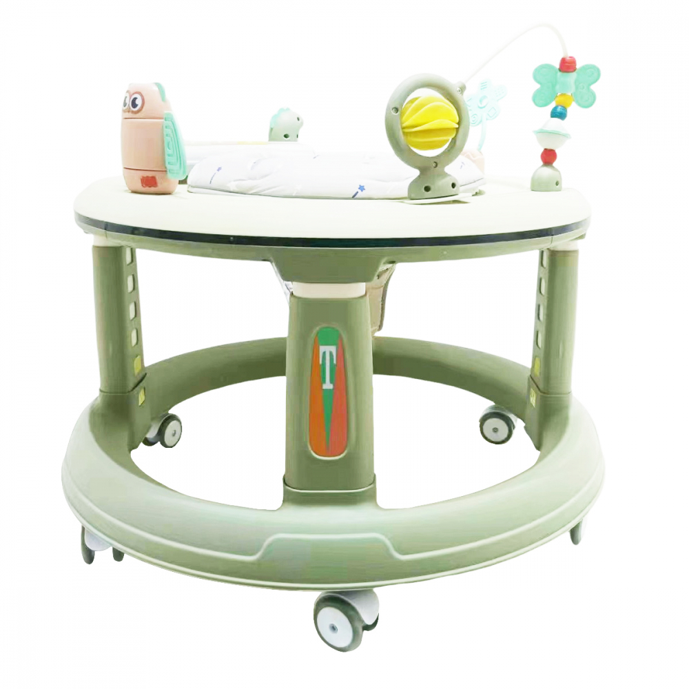 Premergator bebelusi Little Mom Activity Green, educational, cu panou interactiv, sezut rotativ 360 grade, roti pivotante silentioase, dimensiune 68 x 68 x 50 cm