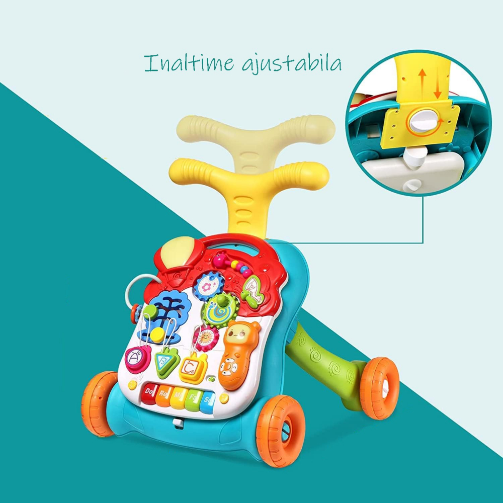 Premergator interactiv multifunctional, masuta activitati, efecte sonore, maner reglare inaltime, 2 viteze ajustabile