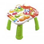 Masuta de activitati include diverse jucarii interactive care stimuleaza simturile si contribuie la dezvoltarea abilitatilor motorii fine, fiind o solutie ideala pentru invatare prin joaca. Include un pian muzical, forme geometrice cu litere ABC, o rotita, un arbore labirint, o omida cu margele si o telecomanda detasabila cu sunete.