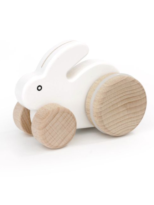 Peek-a-boo, Iepurasul alb vrea sa fie observat de noii lui stapani prietenosi! Creat din lemn solid ornat cu pigmenti naturali, adorabilul iepure de la Bajo constituie o prima jucarie perfecta pentru micutul tau.