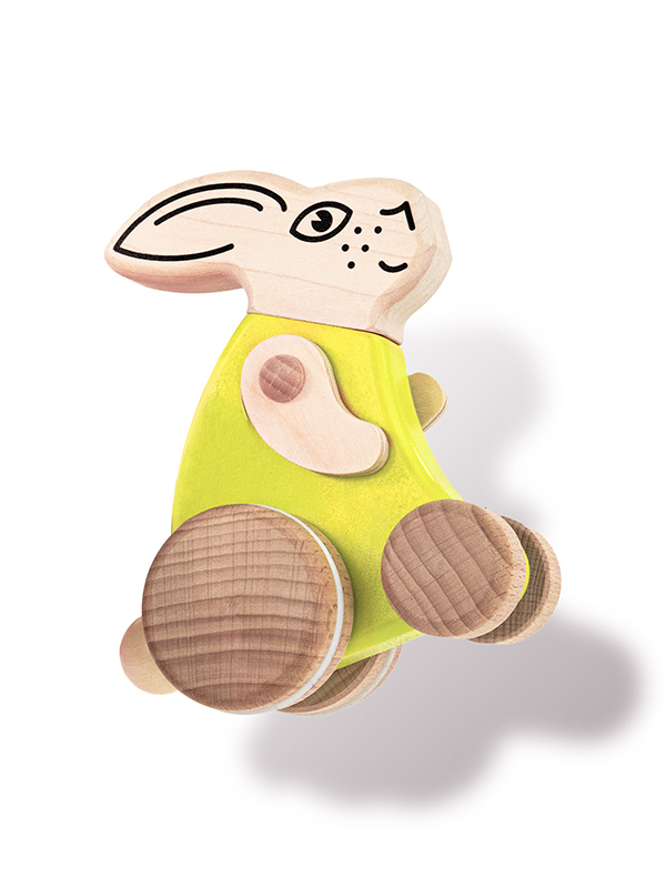 Peek-a-boo, Iepurasul elegant, cu tricou vrea sa fie observat de noii lui stapani prietenosi! O jucarie fermecatoare pe care copiii o vor iubi imediat, echipata cu 4 rotite din lemn si un tricou galben stralucitor, fiind gata sa devina cel mai bun prieten al micutului tau. Iepurasul este potrivit pentru ocazii speciale precum prima zi de nastere sau pentru a fi oferit cadou de Paste, dar si pentru camera de joaca sau plimbarile in aer liber. Jucaria din lemn de la Bajo poate fi pastrata ca o amintire draga pentru intreaga viata, fiind ideala pentru a adauga un strop de culoare locuintei.