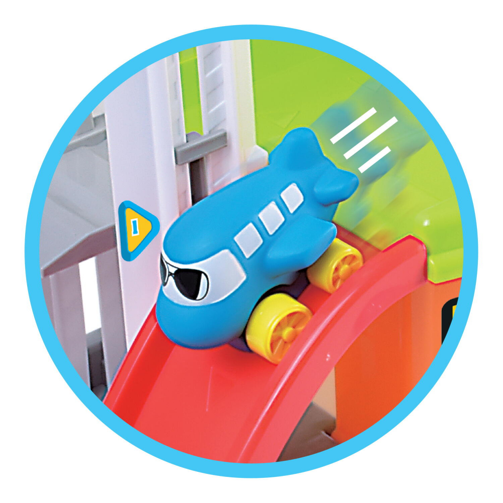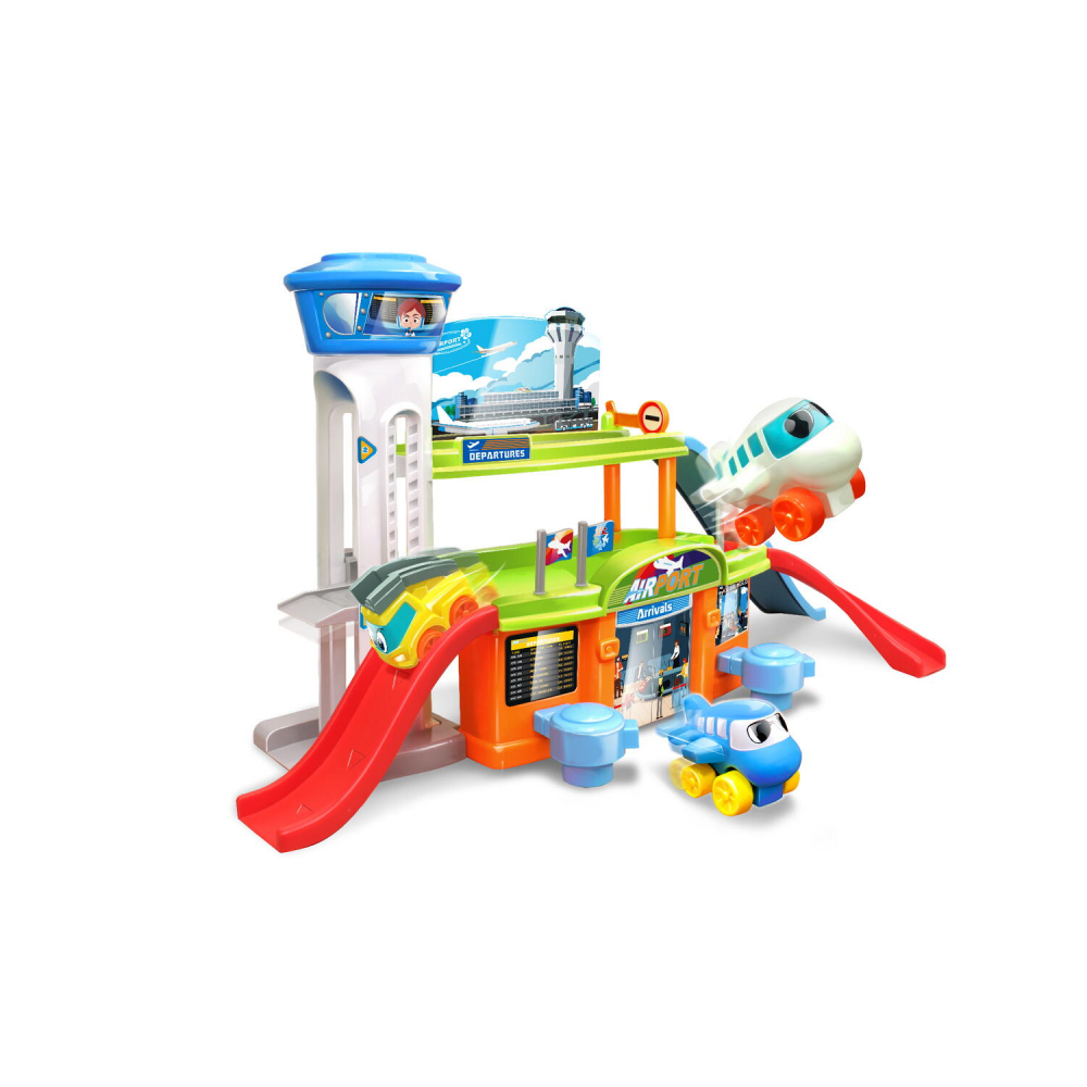 Pregateste-te de decolare! „Primul Meu Aeroport” este un set de joaca interactiv si colorat, perfect pentru micii pasionati de avioane si aventuri aeriene