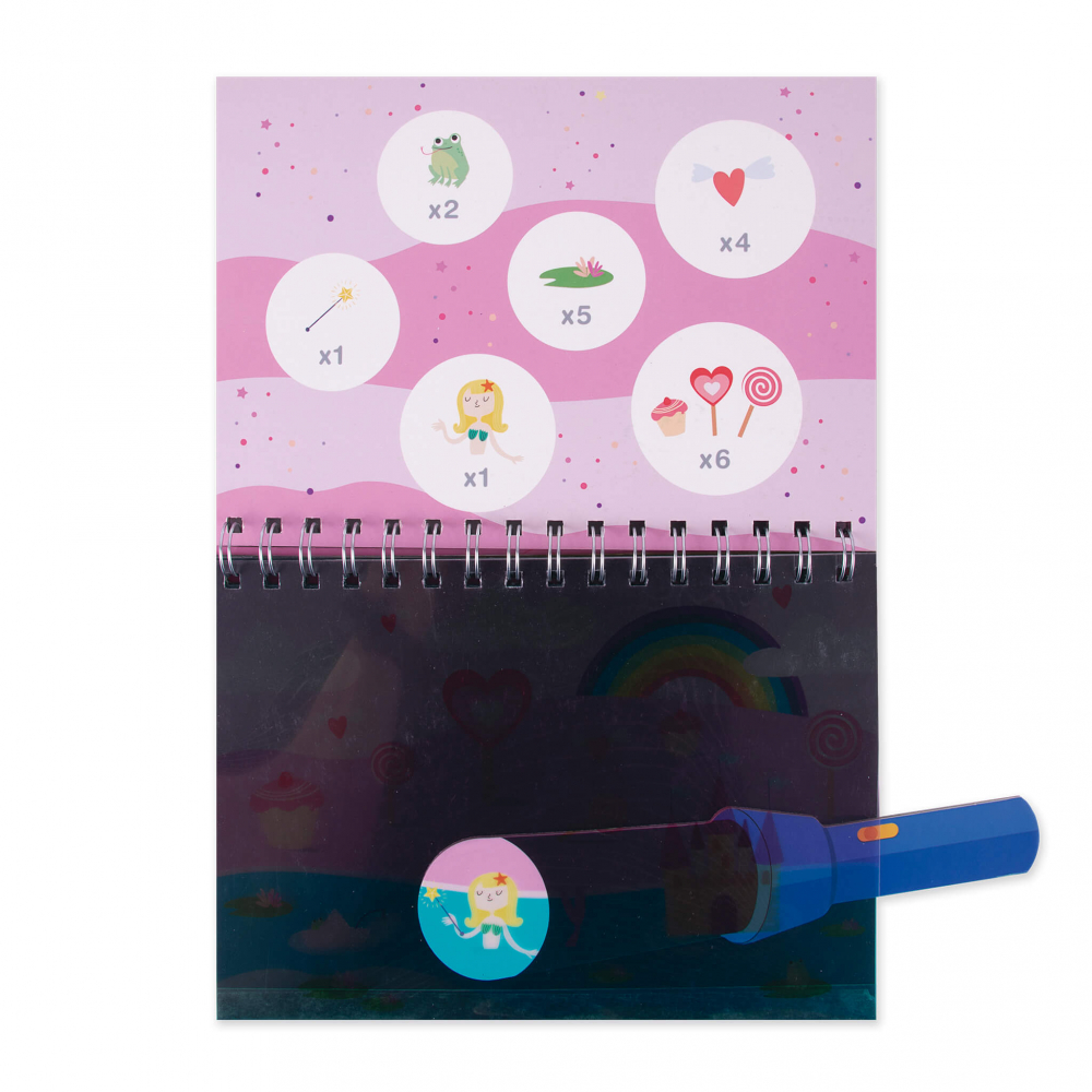 Modelul Magic World include sase fise ilustrate pentru cautarea si gasirea obiectelor si o lanterna magica.