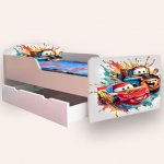 Pat pentru copii Cars Fulger Mcqueen si Bucsa, cu sertar si saltea, 2-12 ani, 160x80 cm