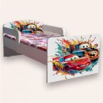 Pat pentru copii Cars Fulger Mcqueen si Bucsa, cu manere si saltea, 2-12 ani, 160x80 cm