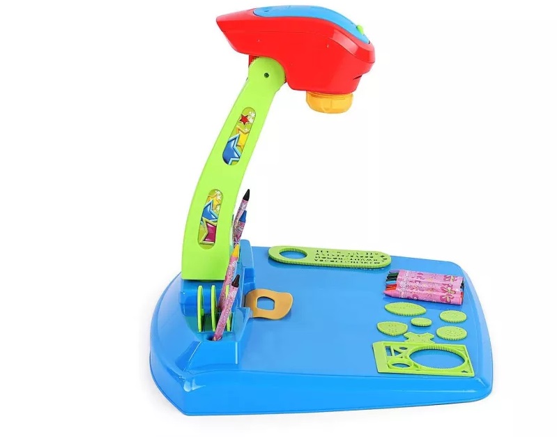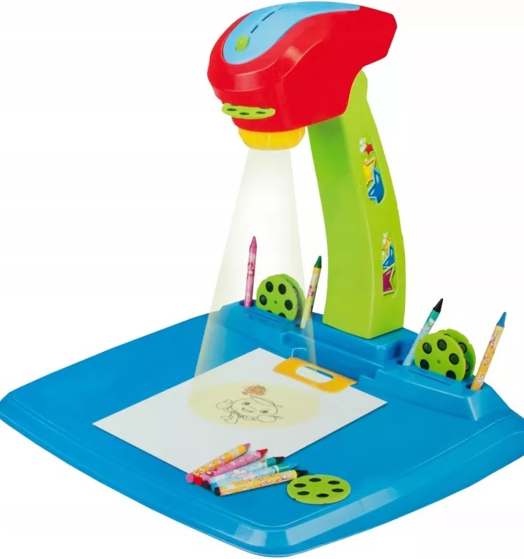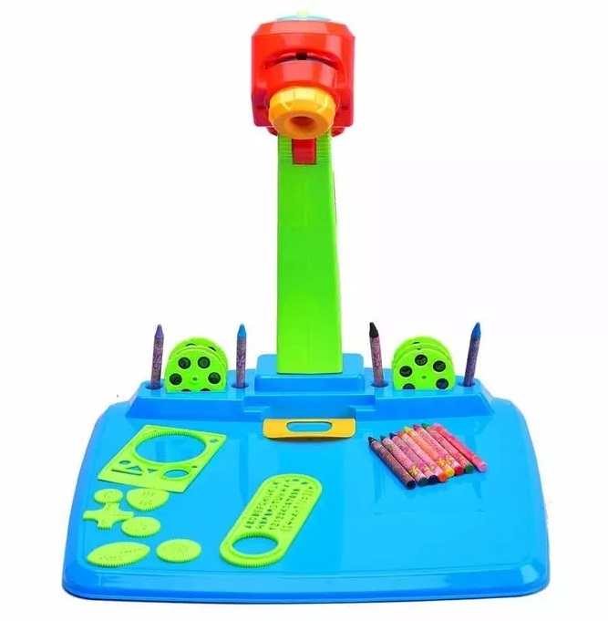 Proiectorul de masa pentru desenat, este realizata cu o baza compartimentata special pt depozitarea de inele si creioane colorate.