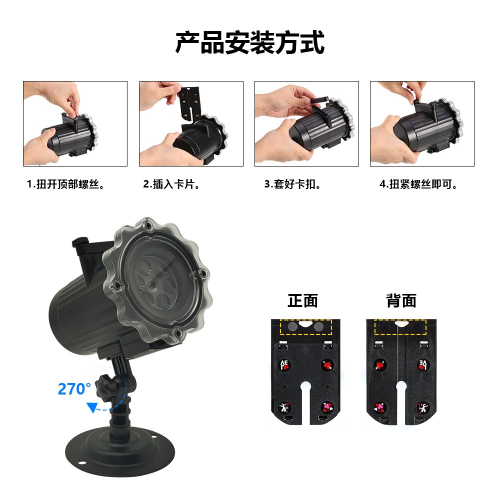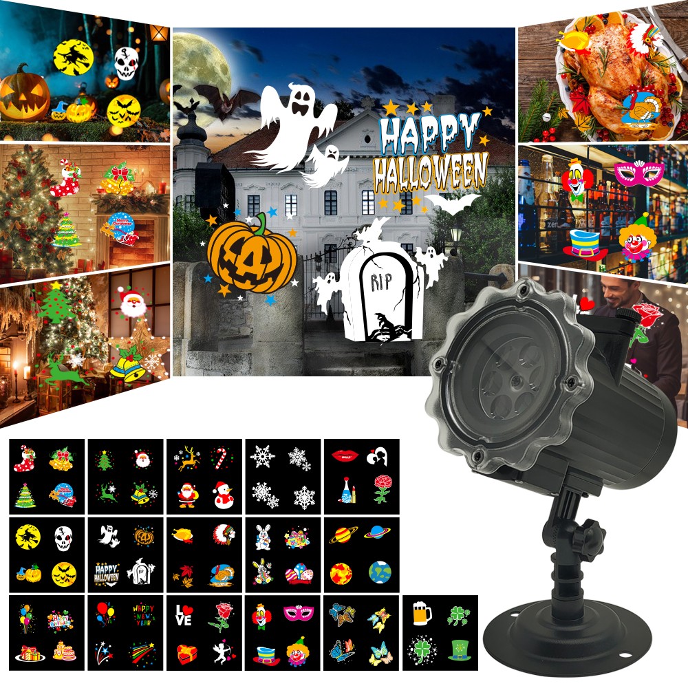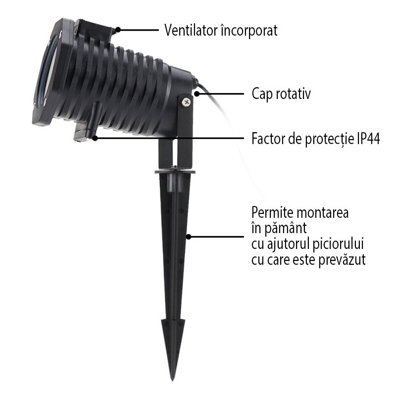 Proiector led exterior 12w, 15 modele figurine, proiectie rotativa, ip44