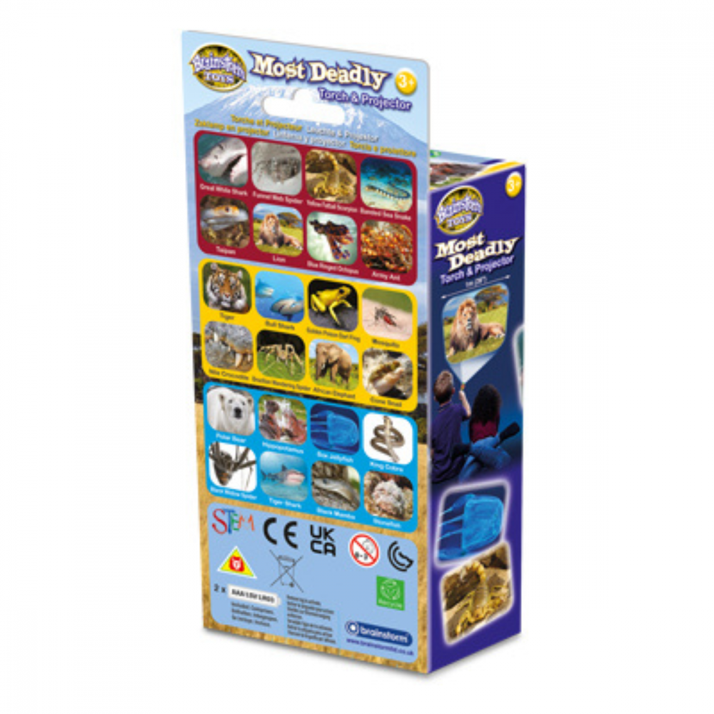 • include trei discuri tip diapozitiv cu 24 de imagini spectaculoase ce infatiseaza cele mai periculoase animale din lume – de la pradatori fiorosi si serpi veninosi, pana la insecte letale si creaturi marine impresionante