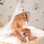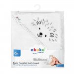 Prosop cu gluga pentru bebelusi Akuku Arici Alb 100x100 cm,realizat din bumbac moale de inalta calitate,absoarbe umezeala,cu agatatoare cuier,recomandat de la nastere
