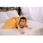 Prosop de baie din bumbac cu capison si urechiuse Floo for Baby Waffle Iepuras Galben