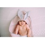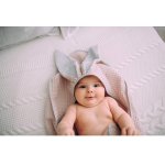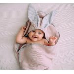 Prosop de baie din bumbac cu capison si urechiuse Floo for Baby Waffle Iepuras Roz