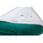 Prosop de baie pentru copii, BabyMam, prevazut cu capison decorat cu broderie vesela, 100% bumbac, dimensiune 100 x 100 cm, Teddy Bear Green