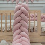 Protectie de pat impletita, MiniMini, Velvet Magic, Roz Pudrat, 250 cm