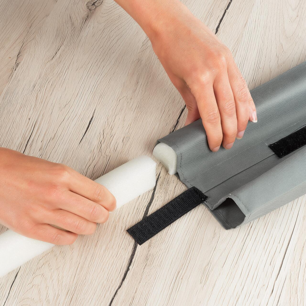 Astfel, protectia poate fi ajustata optim si este potrivita pentru usi de la 70 la 90 cm, cu o grosime a blatului de usa de aprox. 3,8 - 4,2 cm.