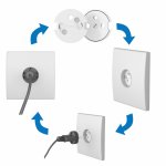 Pur și simplu plasați dopul în locul găurilor și răsuciți. Încuietoarea se va elibera și ștecherul va ajunge la priză. Orice priză, de ex. o mufă de încărcare, poate fi folosită ca cheie.