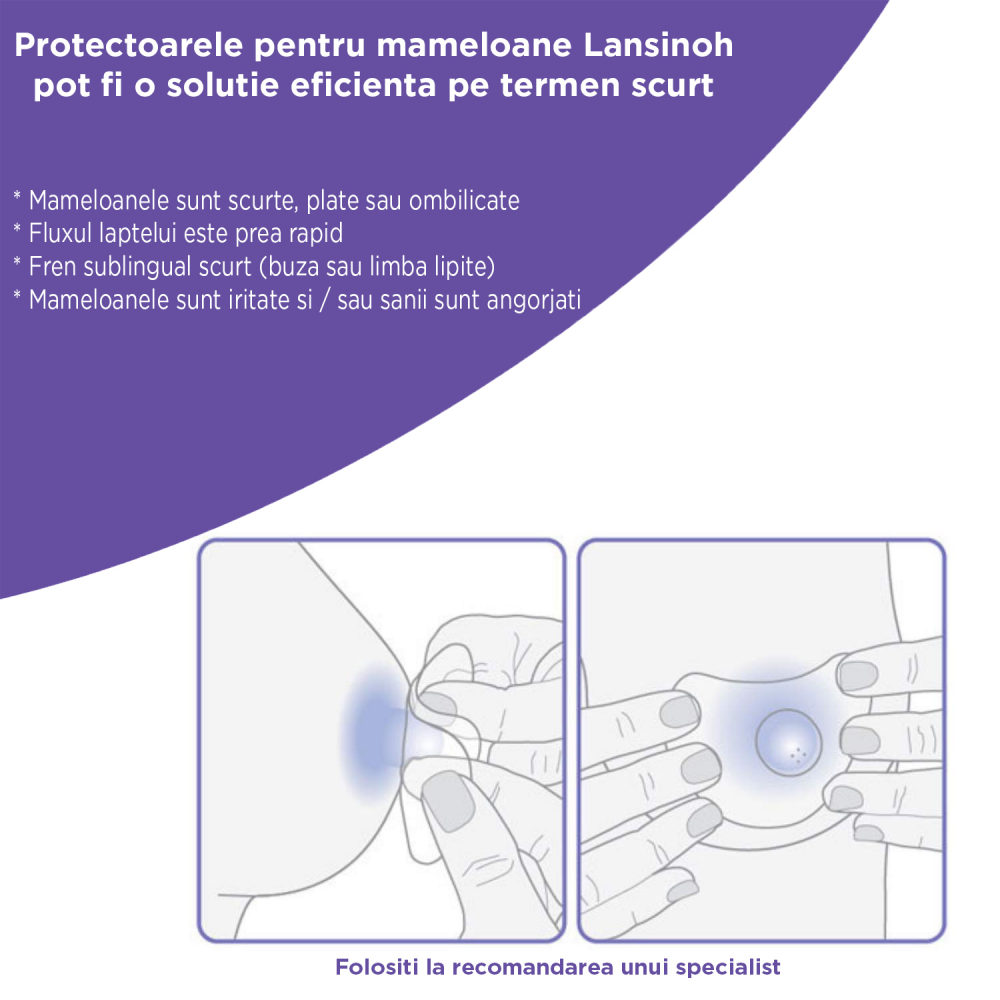 Orice protectoare de mamelon trebuie folosite doar sub indrumarea unui consultant in alaptare.