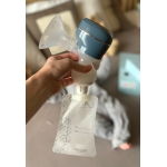 copilul sa se poata bucura de fiecare picatura de lapte. De asemenea, punga pentru lapte matern se poate conecta direct la tetina biberonului nostru, prin intermediul adaptorului special, pentru o tranzitie lina de la san, la biberon.