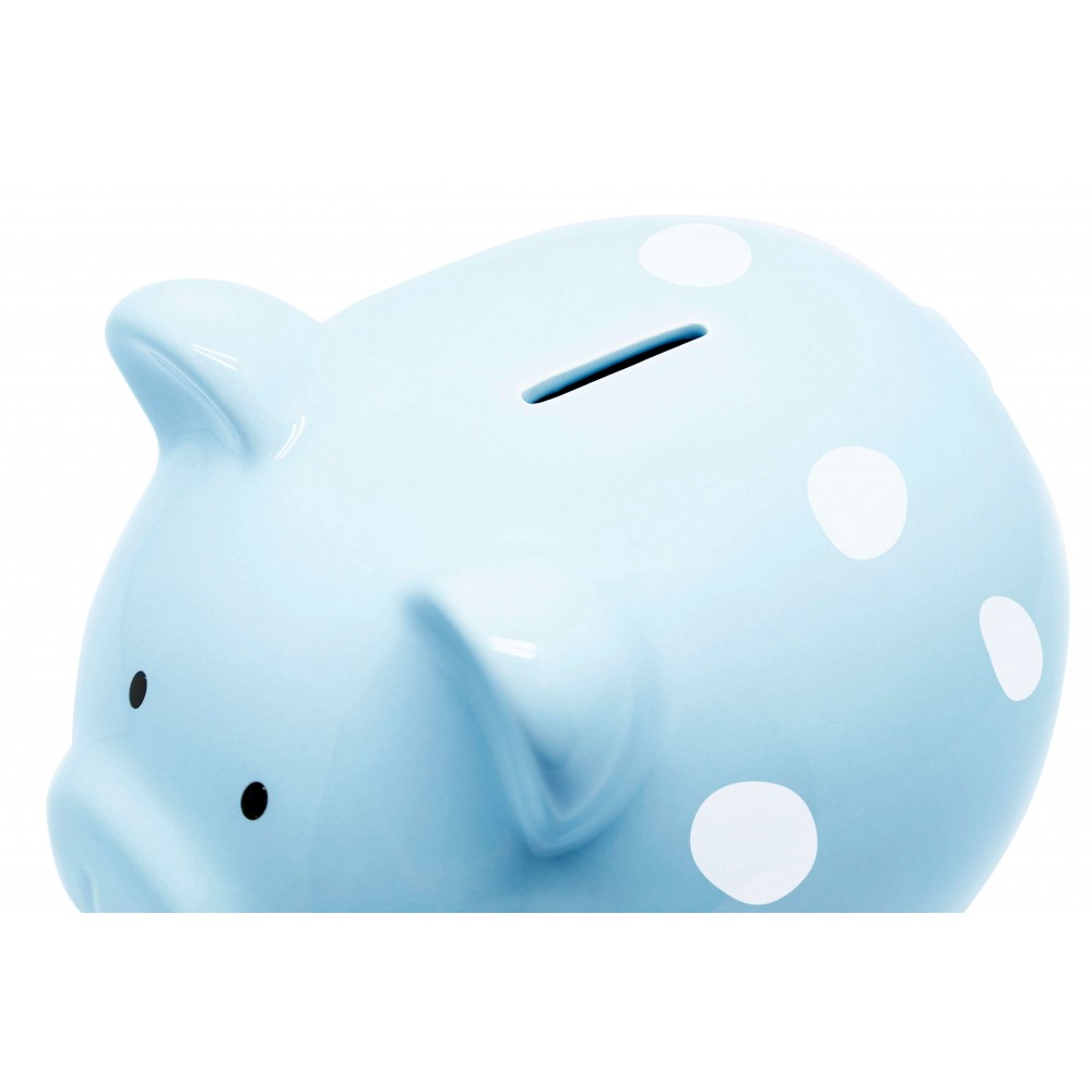 Pusculita bleu cu buline albe, se poate goli prin intermediul dopului aflat in partea sa inferioara.