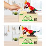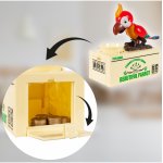 2. Reactia papagalului : Dupa introducerea unei monede, papagalul incepe sa se miste intr-un mod care simuleaza mancarea dintr-un castron. Aceasta miscare distractiva face ca intregul proces sa fie atractiv si antrenant pentru copil.