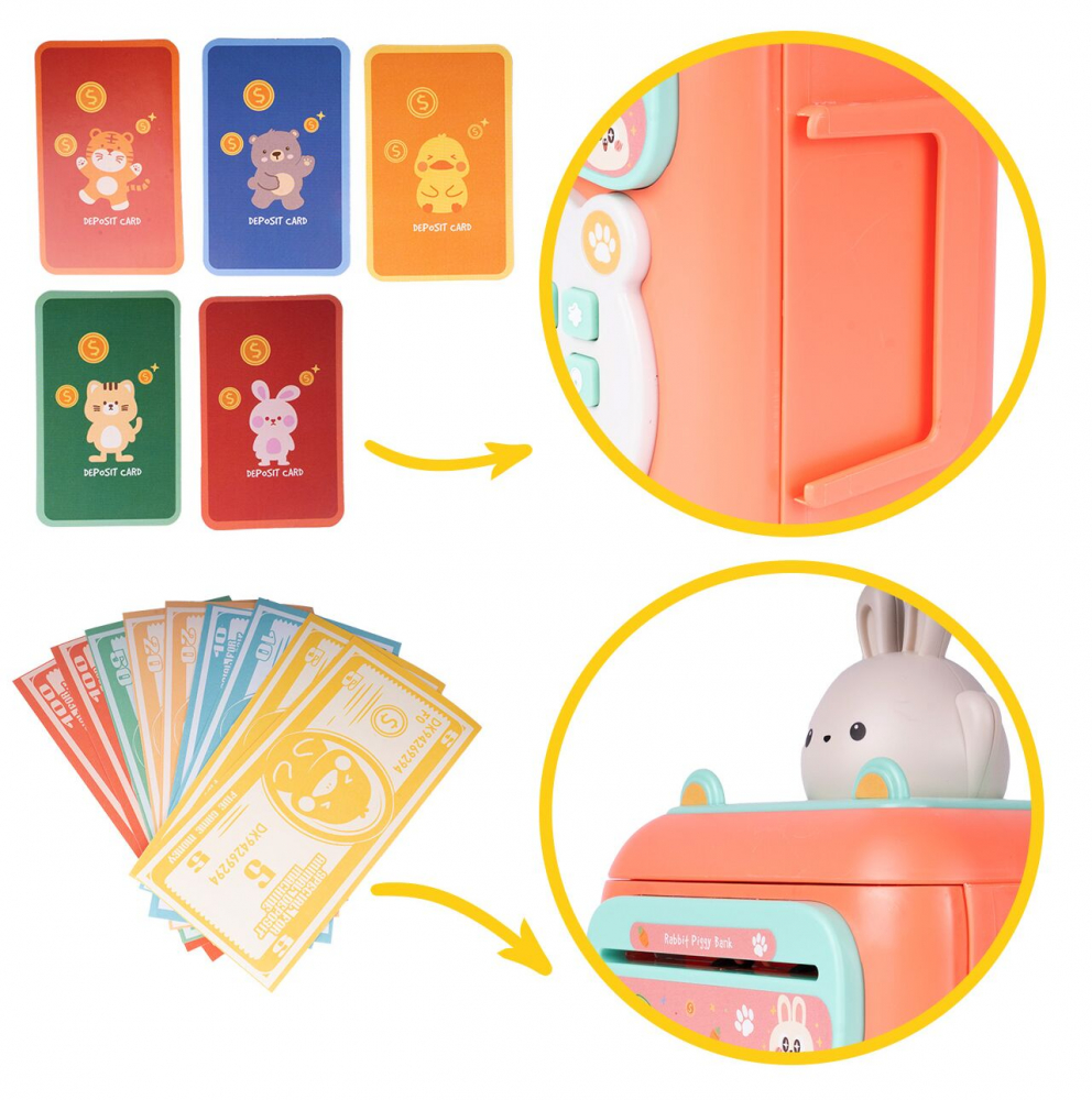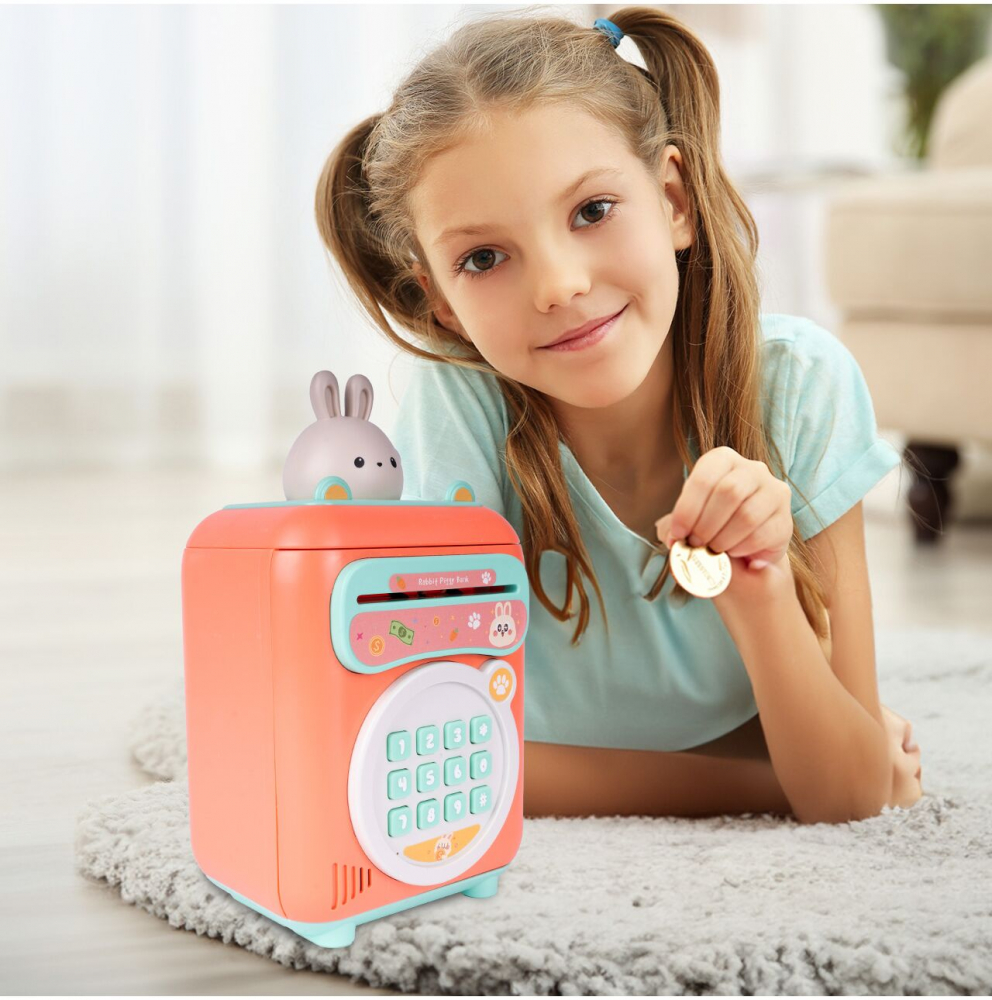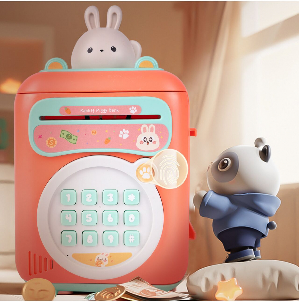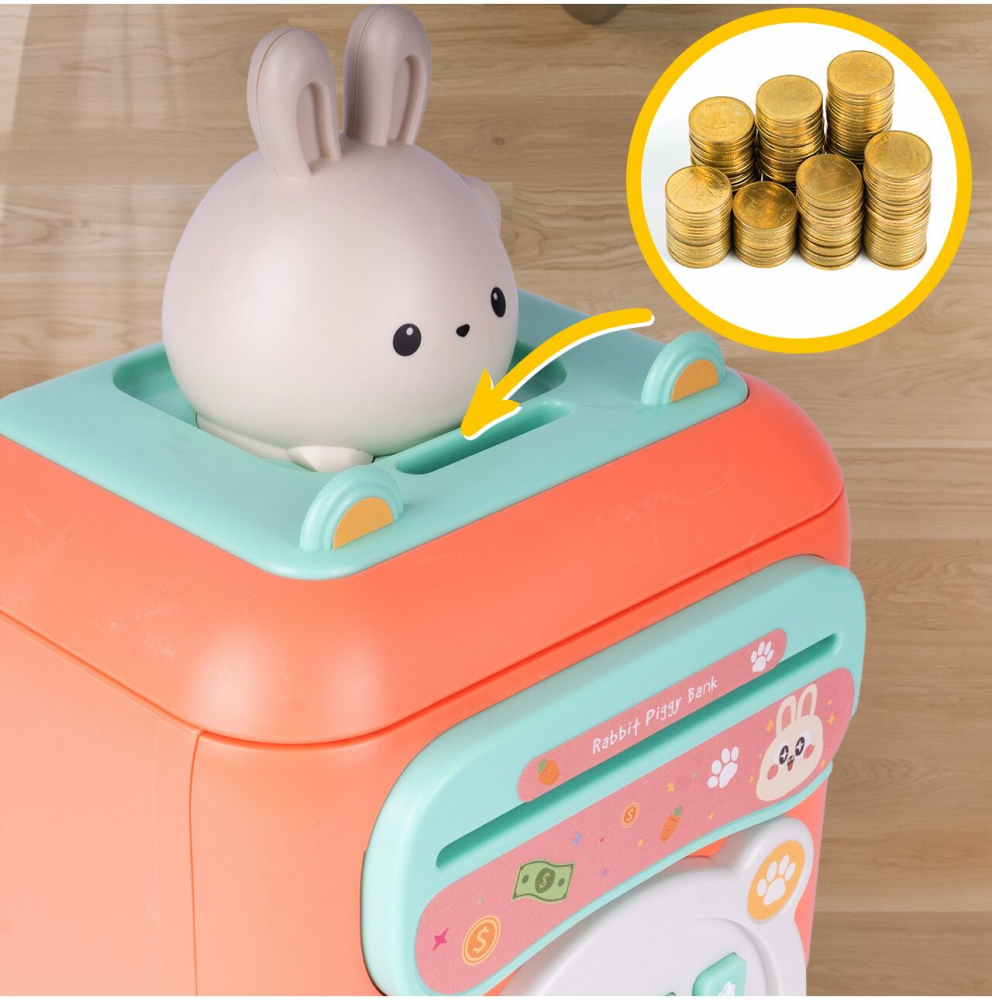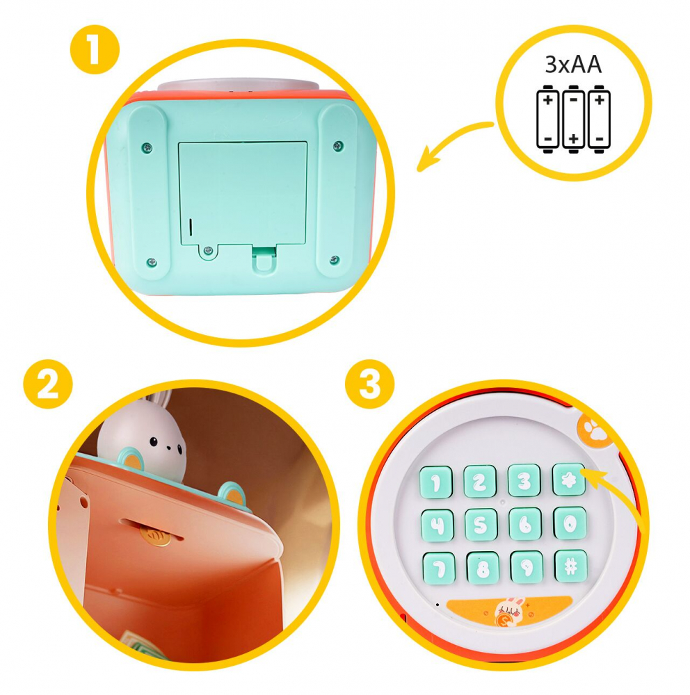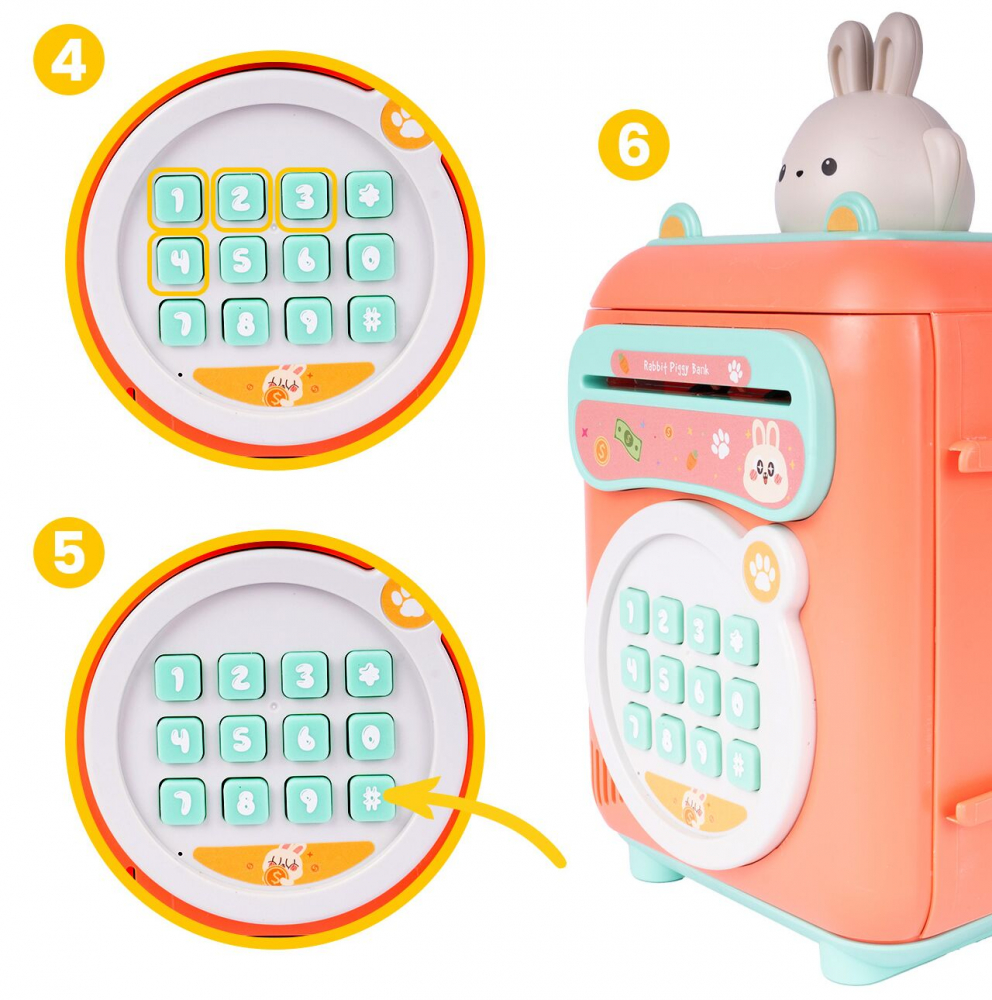 Pusculita interactiva pentru copii tip seif cu cifru Pink Bunny