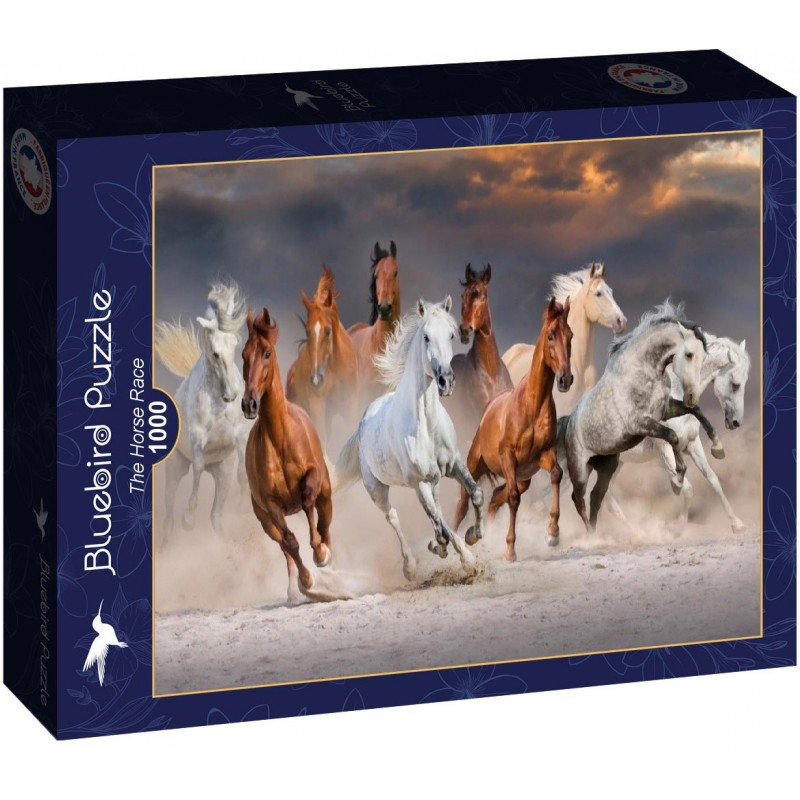 Puzzle-ul Bluebird - The Horse Race este format din 1000 de piese si are dimensiunile de 69 x 47,8 cm.