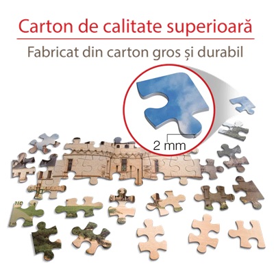 Jocul puzzle este produs din carton albastru de calitate superioară, foarte rezistent chiar și la asamblări multiple.