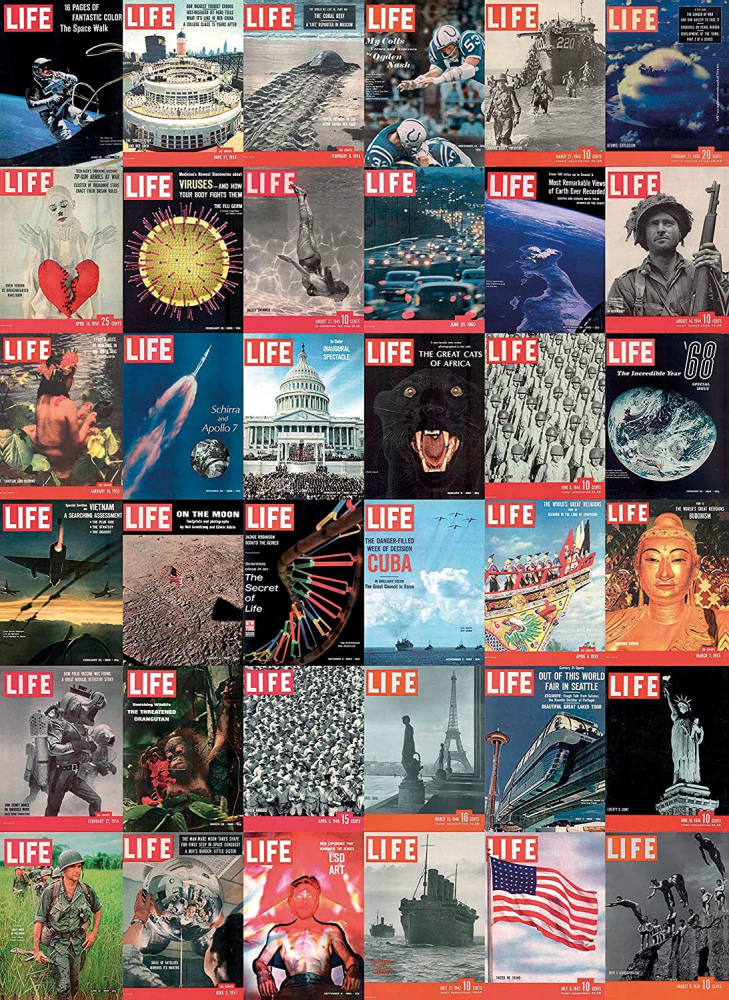 Imaginea puzzle-ului prezinta un colaj de coperte ale revistei LIFE, fiecare capturand un moment important sau iconic, de la discursul lui Martin Luther King la aparitia The Beatles.