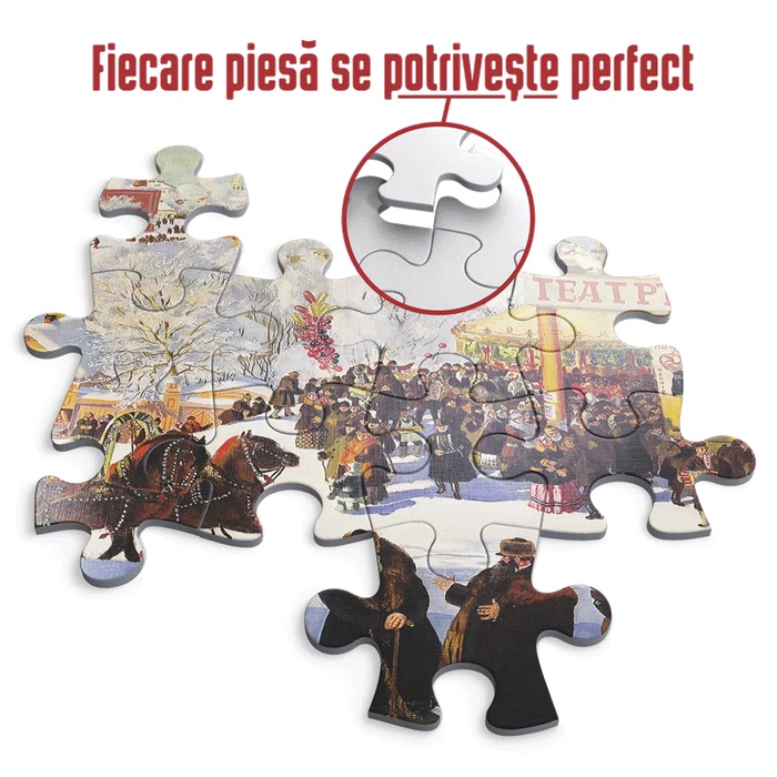 Caracteristici puzzle Boris Kustodiev – Maslenitsa: