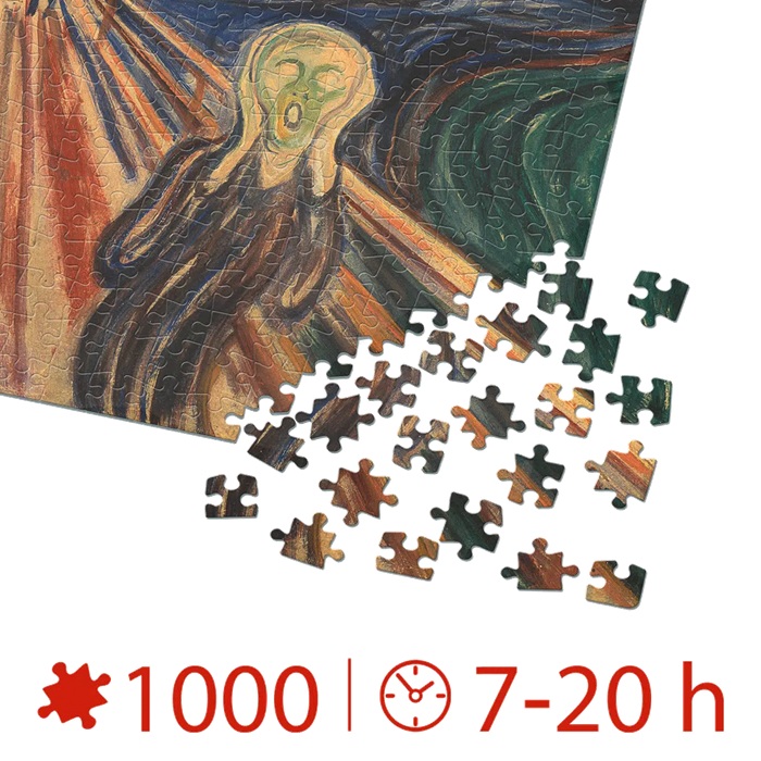 Cu puzzle 1000 piese The Scream ai libertatea să reflectezi la simbolistica picturii celebre.