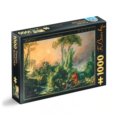 Din colecția puzzle-uri de artă face parte și puzzle-ul de 1000 de piese François Boucher – River Landscape with an Antique Temple, un puzzle pentru copii ce redă tabloul omonim în detalii deosebite.