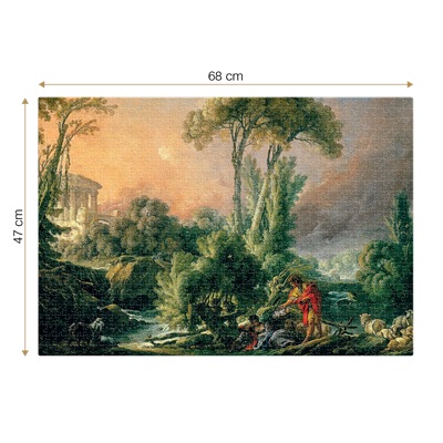 Citește mai jos și alte caracteristici ale puzzle-ului 1000 piese François Boucher – River Landscape with an Antique Temple.